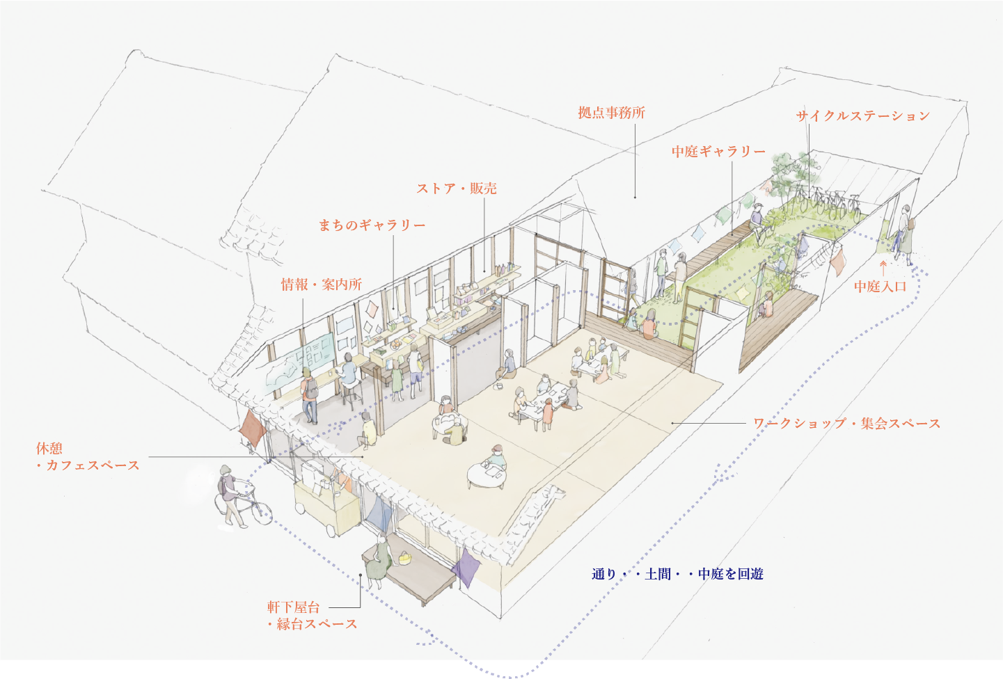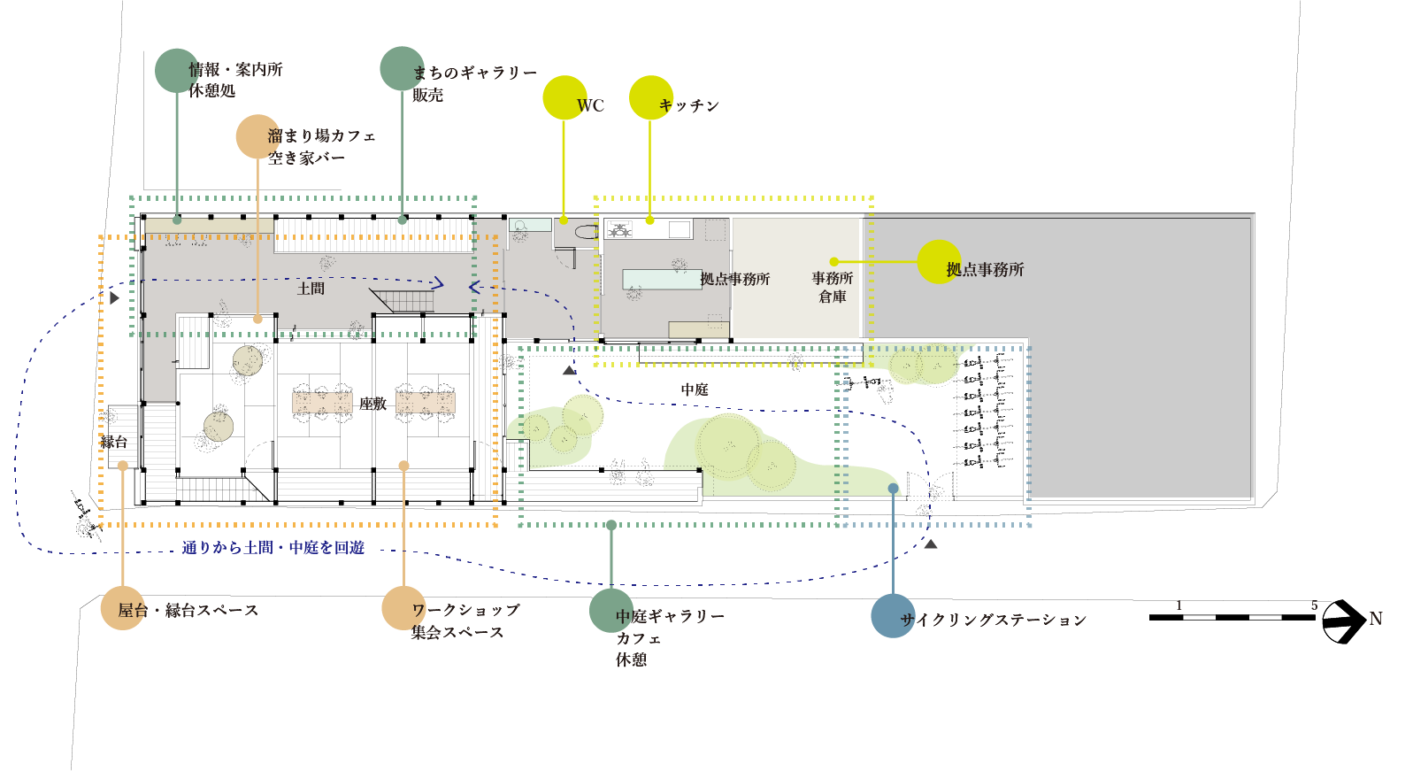 2020 年には中庭を整備し、地域の情報や観光案内、休憩所、イベント会場として、 オープン日を少しずつ増やしながら運営していきます。