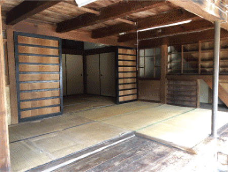 昭和元年に建てられ、数十年空き家であった「かっぱや」は、商いの町岸本の名残を残す伝統的な商家建築です。