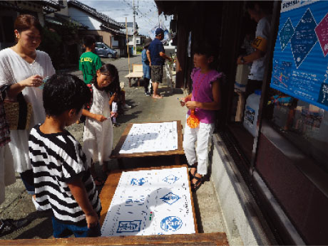 土佐凧デザインコンテストの応募作品を展示し、山北みかんのかき氷を振る舞い、